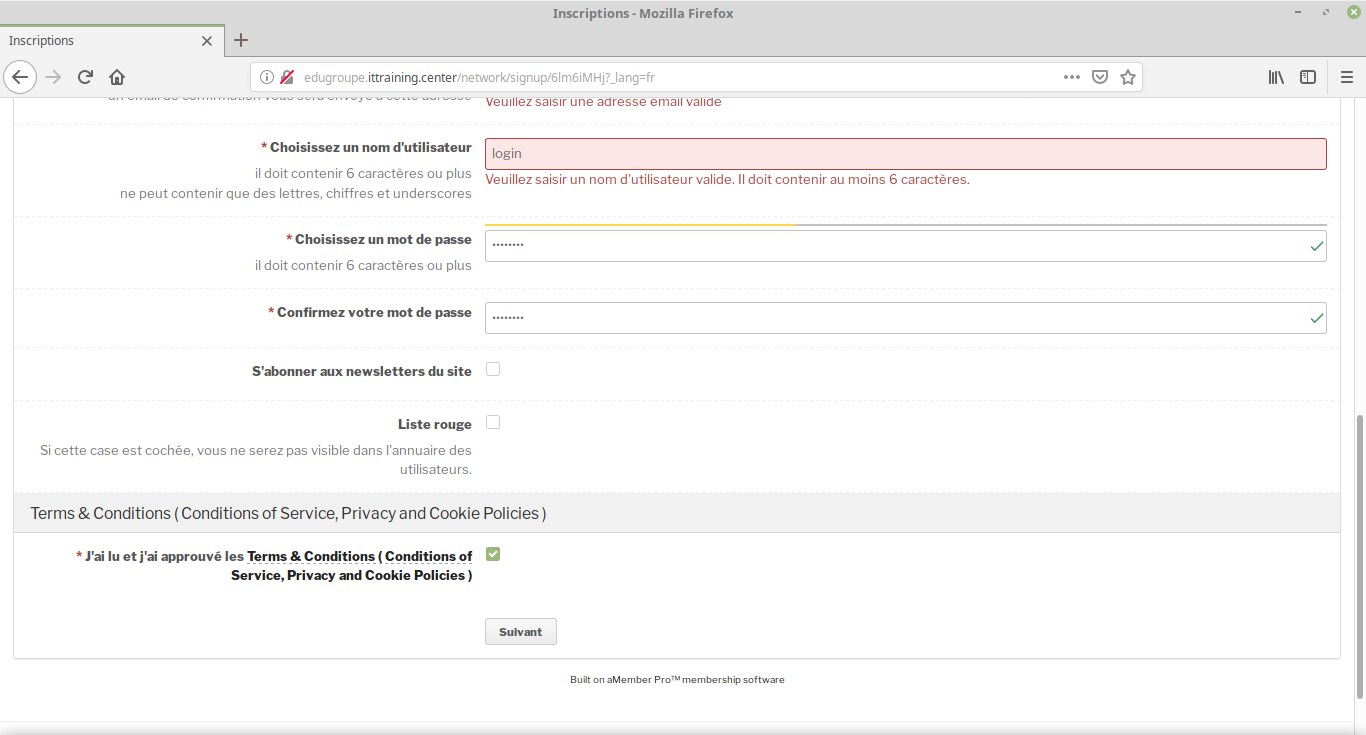 Utilisez le code cours A6ADR4VE. Remplissez le formulaire :