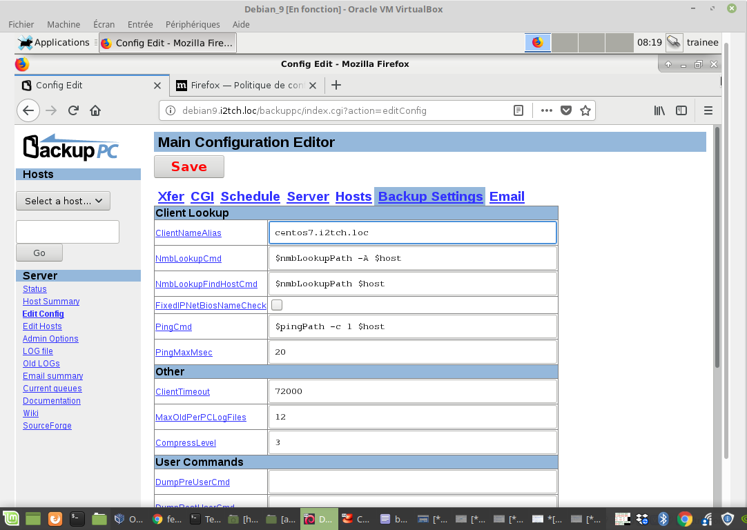 root@debian9:~# vi /var/backups/.amandahosts root@debian9:~# cat /var/backups/.amandahosts localhost backup centos7.i2tch.loc amandabackup amdump