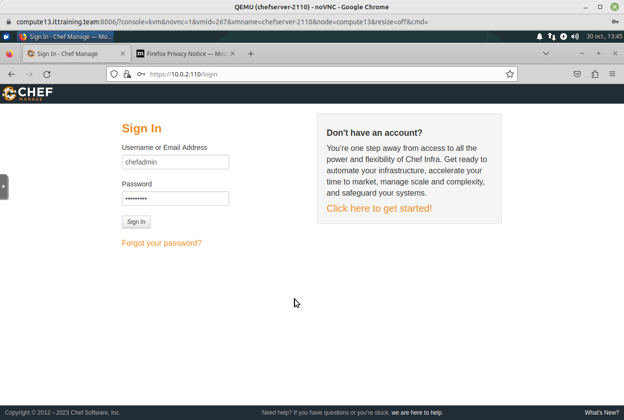 Connectez-vous ensuite à votre VM ChefServer_10.0.2.110_VNC.