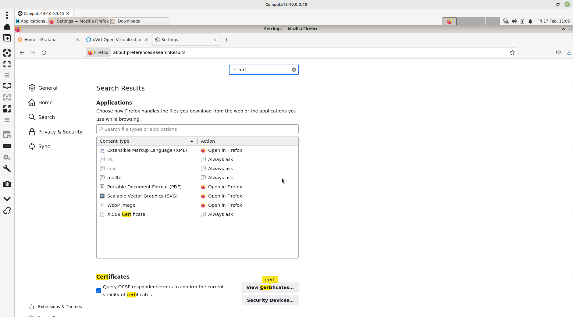 Entrez dans les Settings du navigateur web et recherchez la chaine cert :