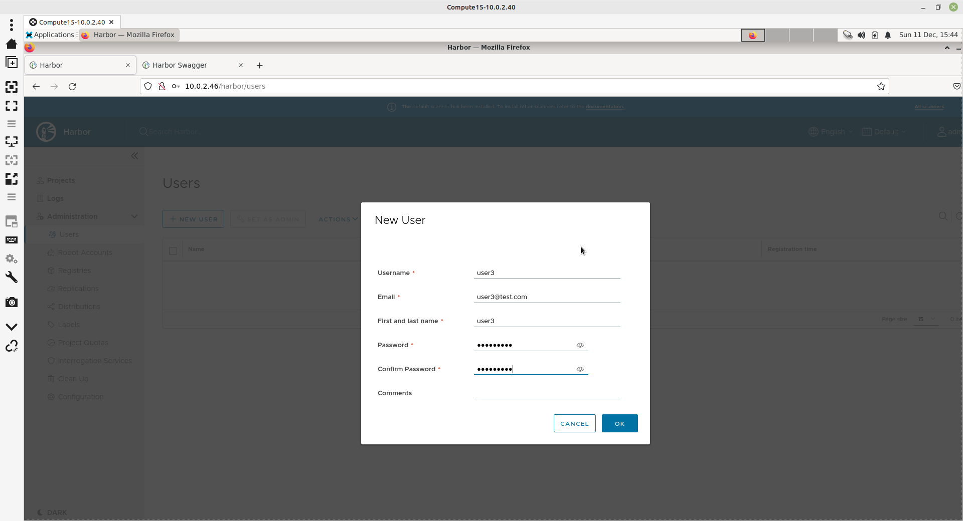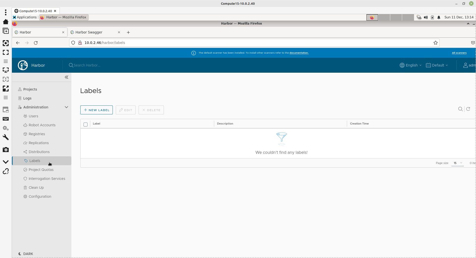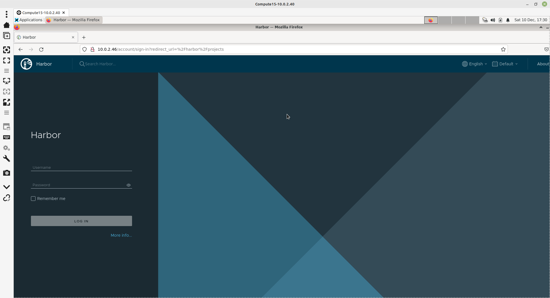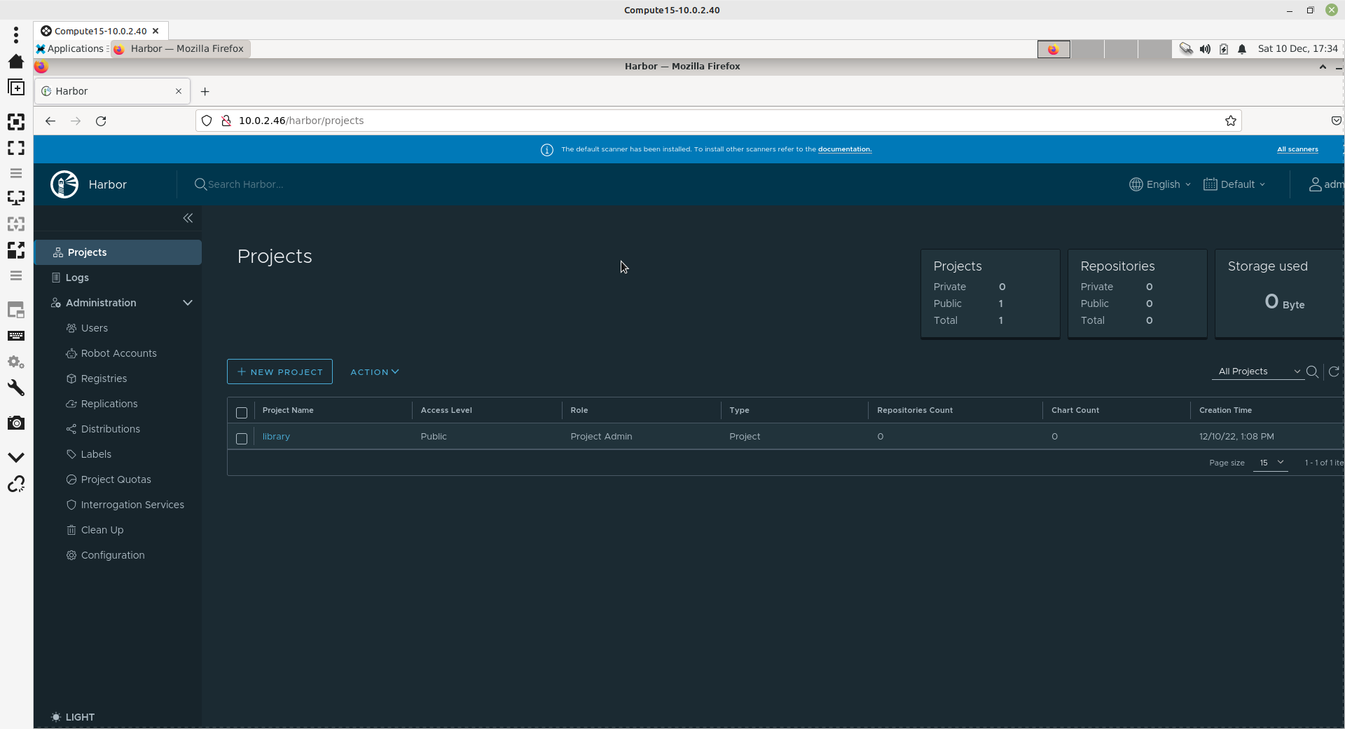 Connectez-vous avec les identifiants par défaut - admin / Harbor12345 :