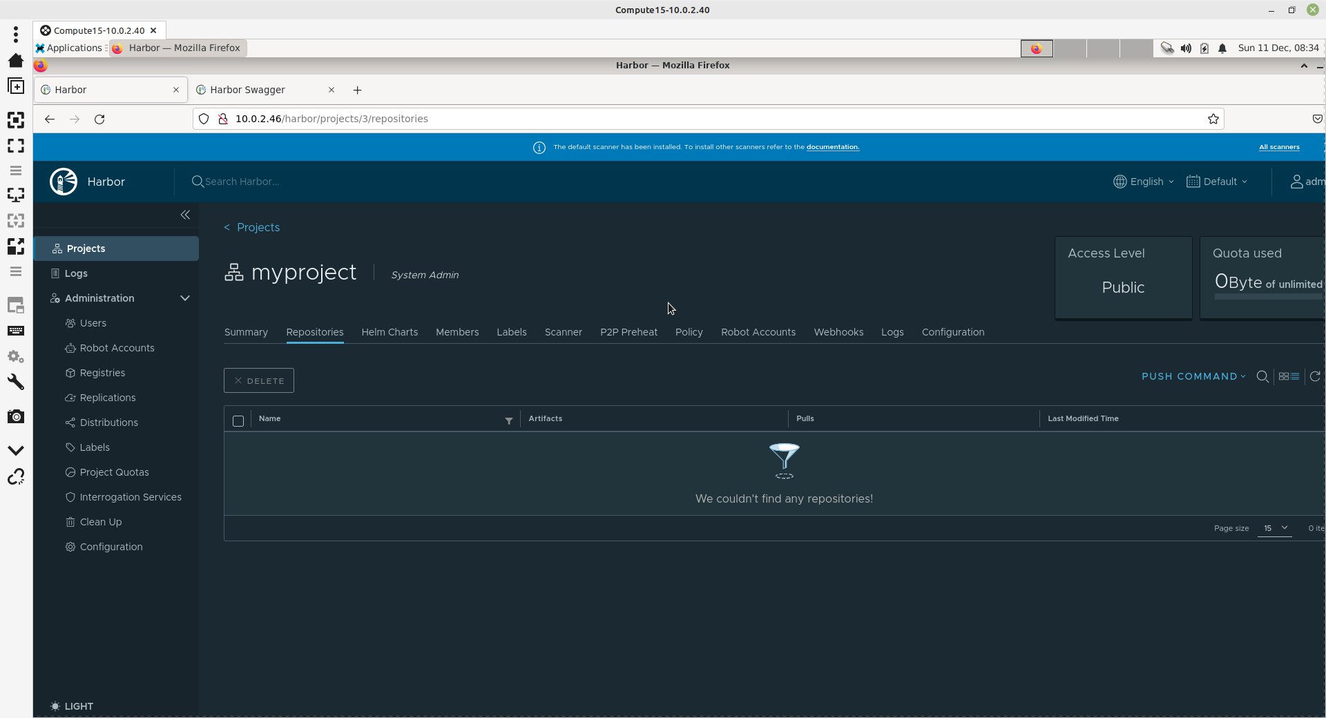 Retournez à l'interface de Harbor et cliquez sur Projects > myproject :