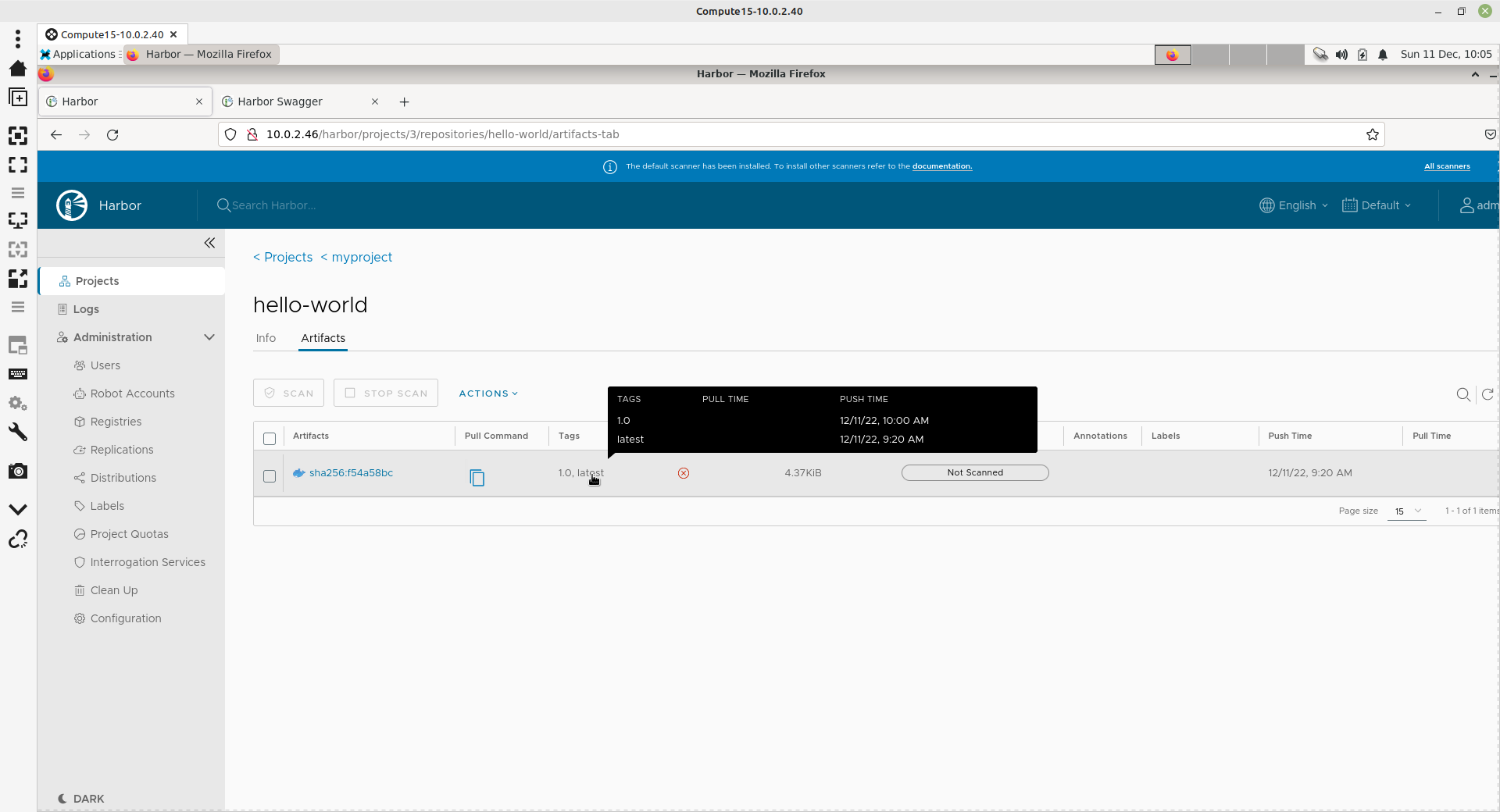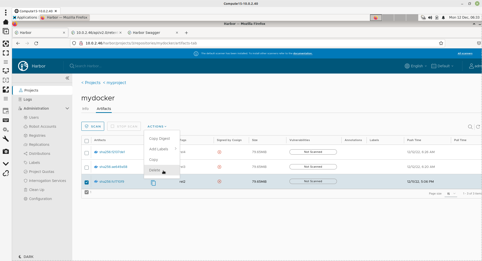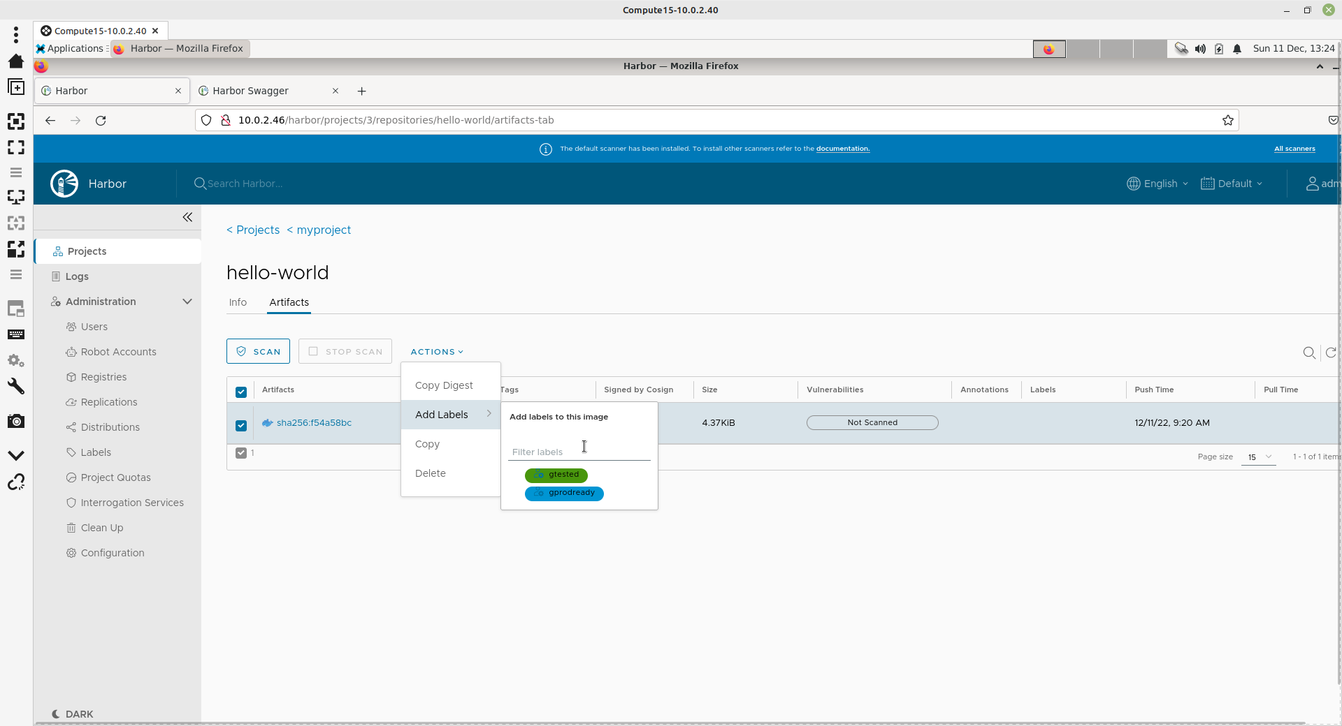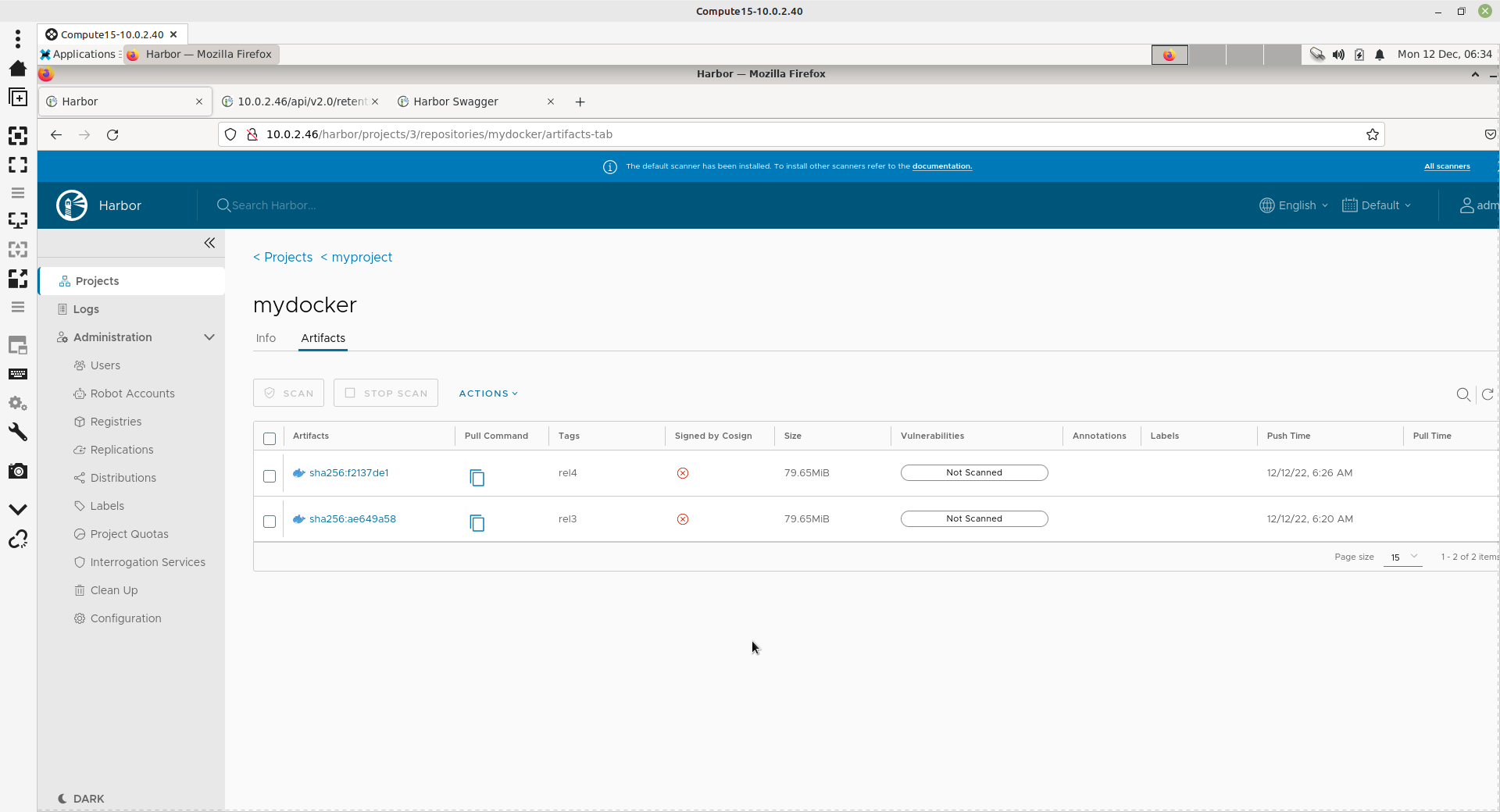 Dans l'interface de Harbor, cliquez sur Projects > myproject > myproject/mydocker et cochez rel2 :