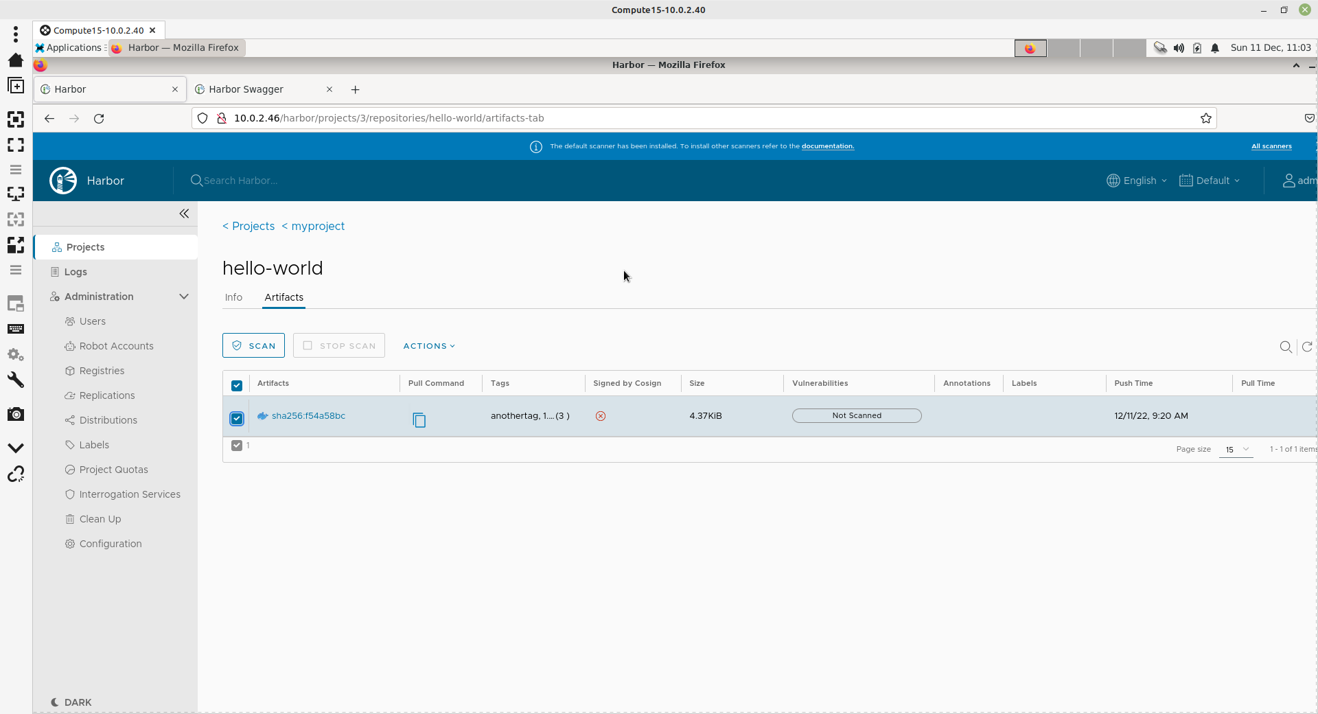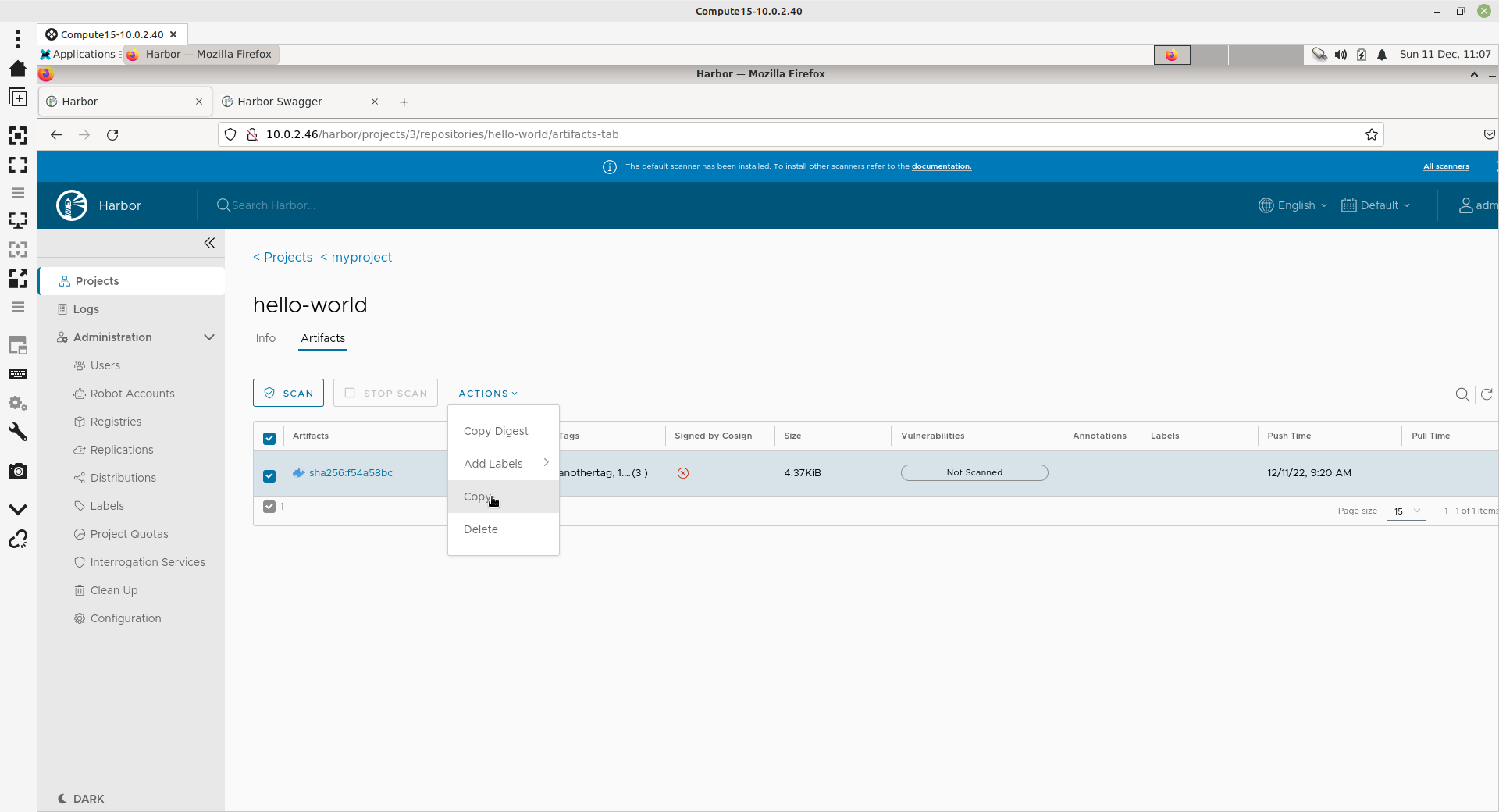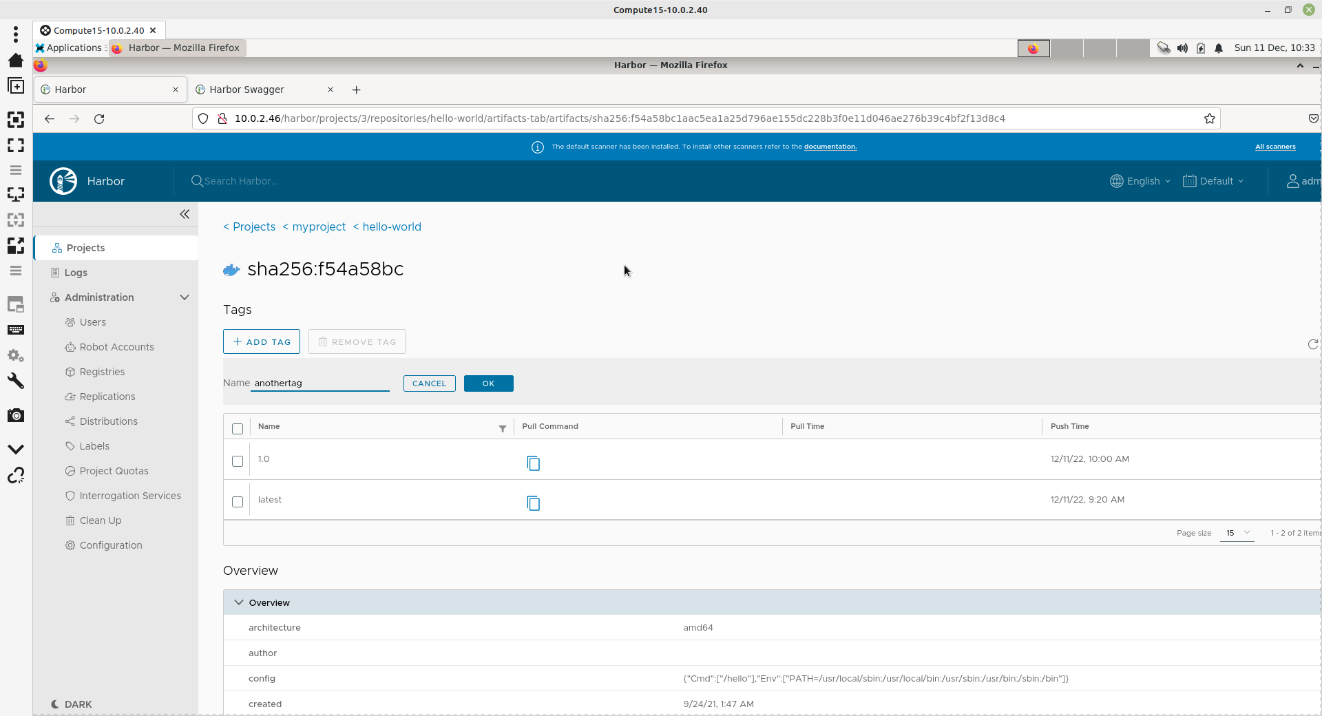 Dans l'interface de Harbor, cliquez sur Projects > myproject > myproject/mydocker et cochez rel2 :