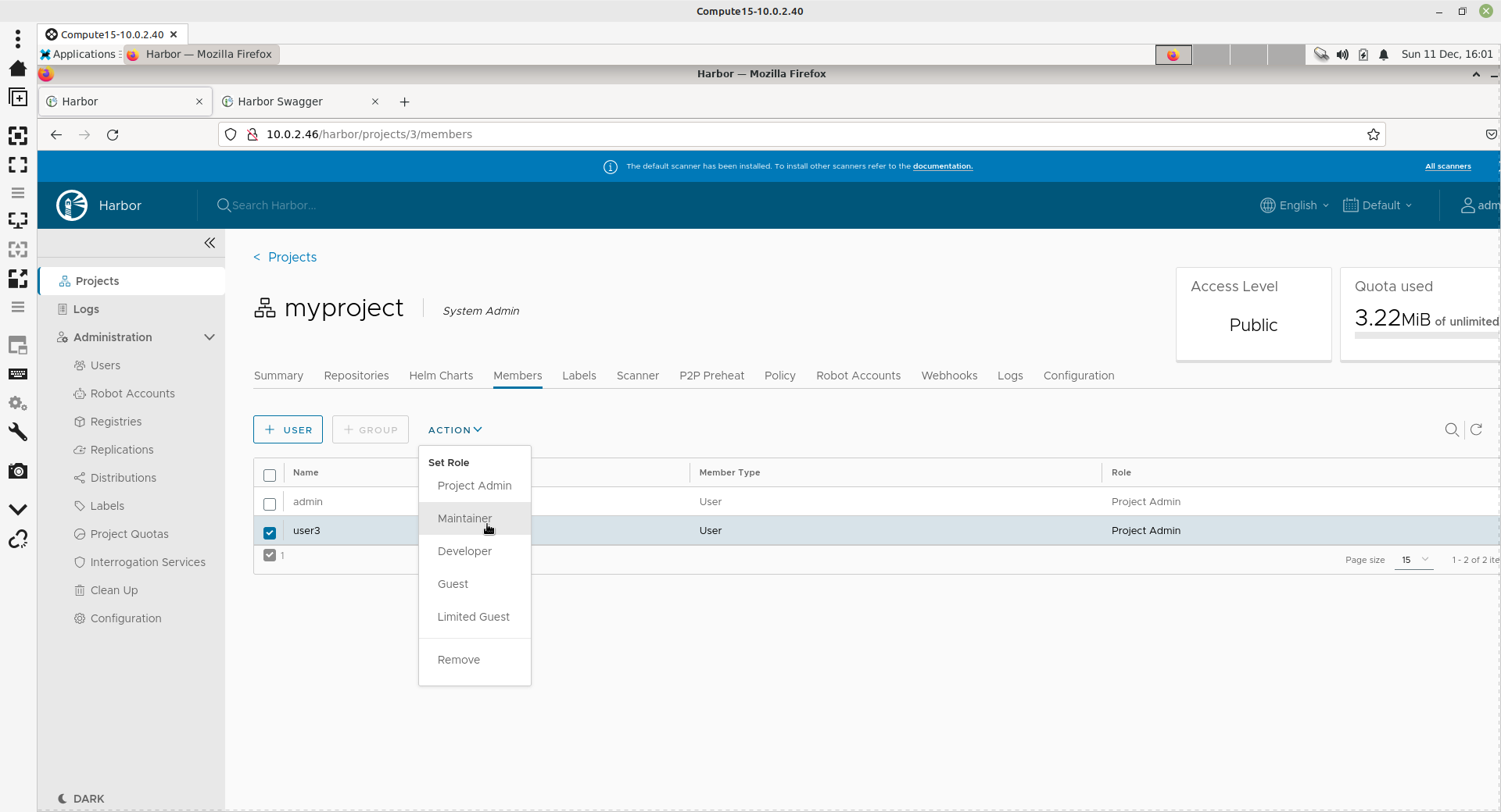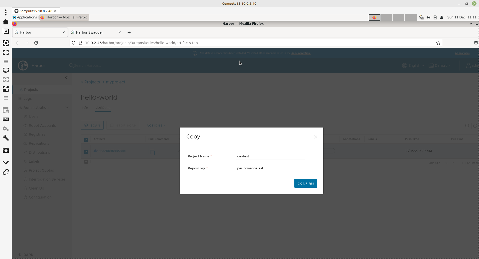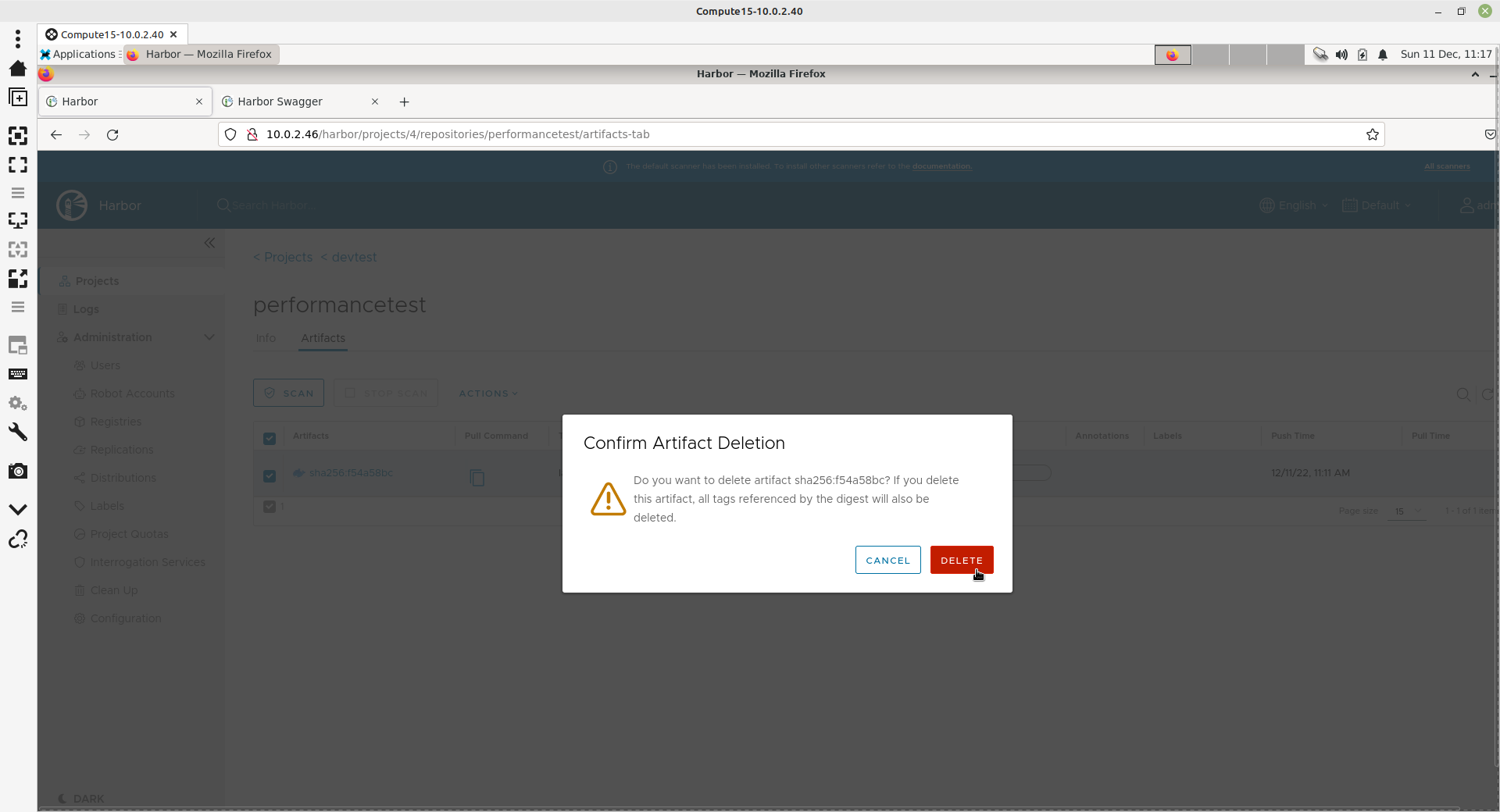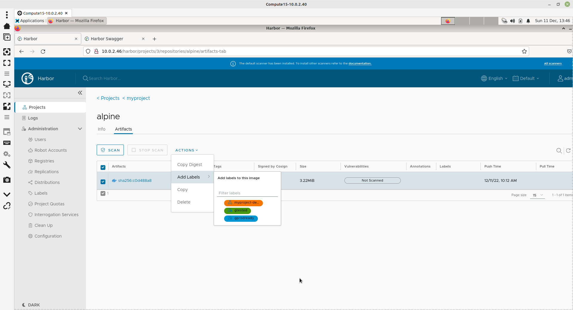 Dans l'interface de Harbor, cliquez sur Projects > myproject > myproject/mydocker et cochez rel2 :