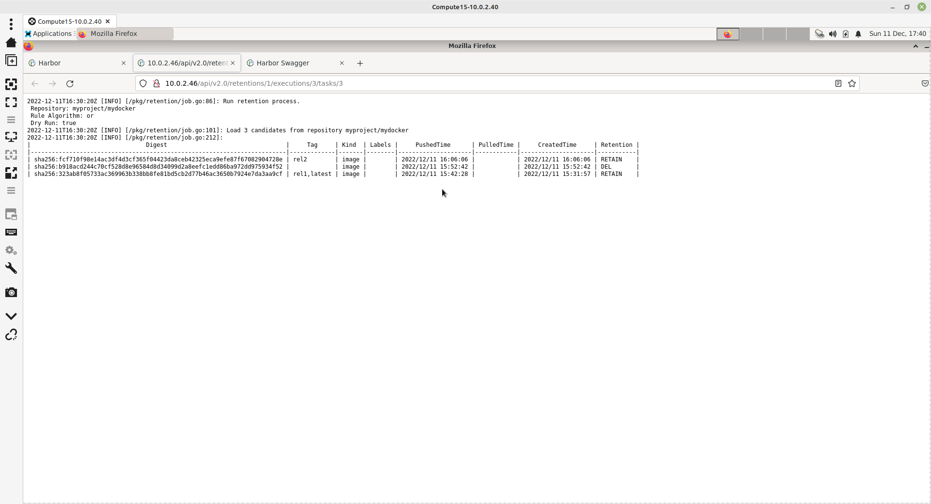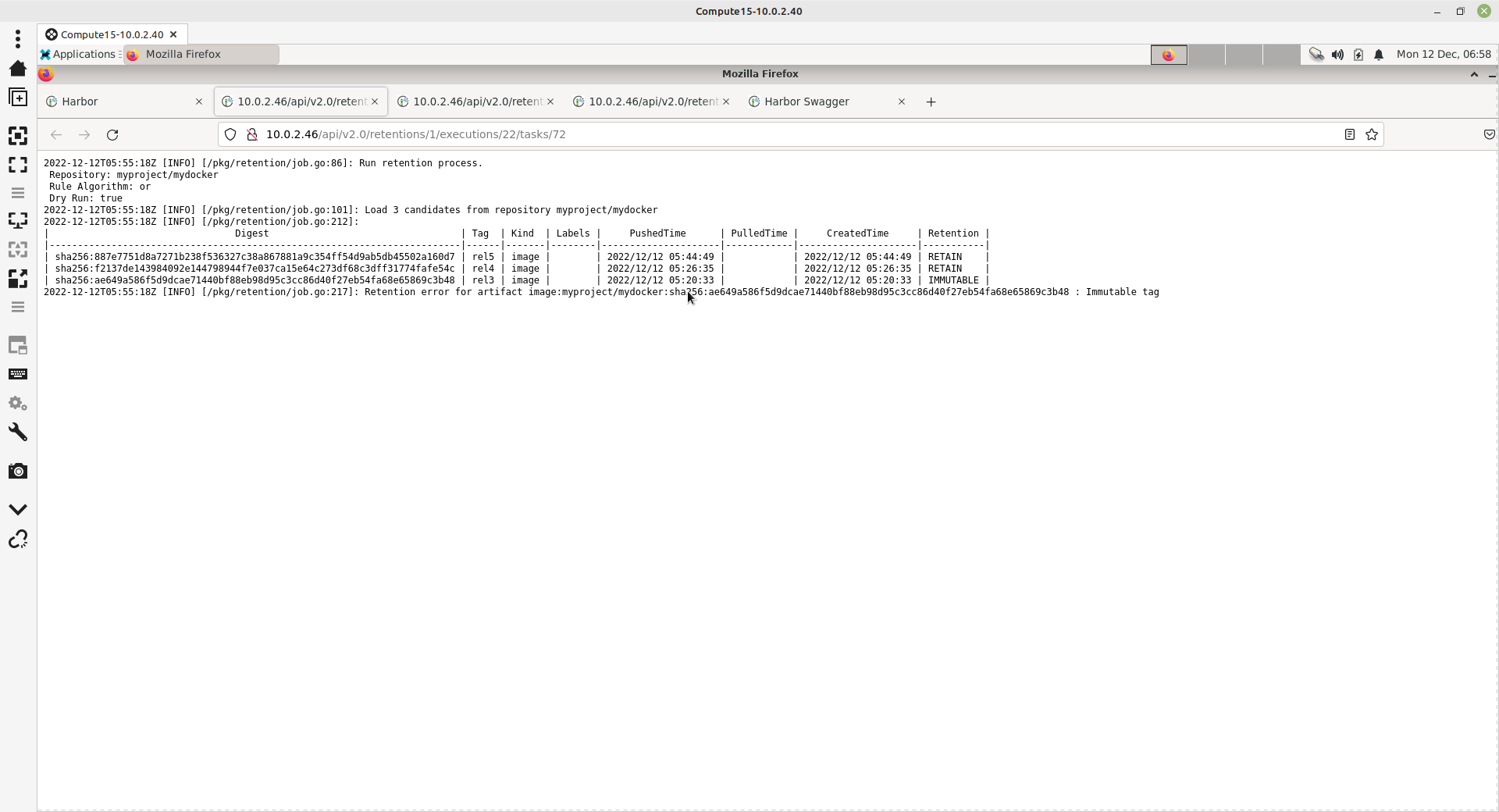 Procédez à un Dry Run de la règle de Rétention de Tags et consultez le log de mydocker :