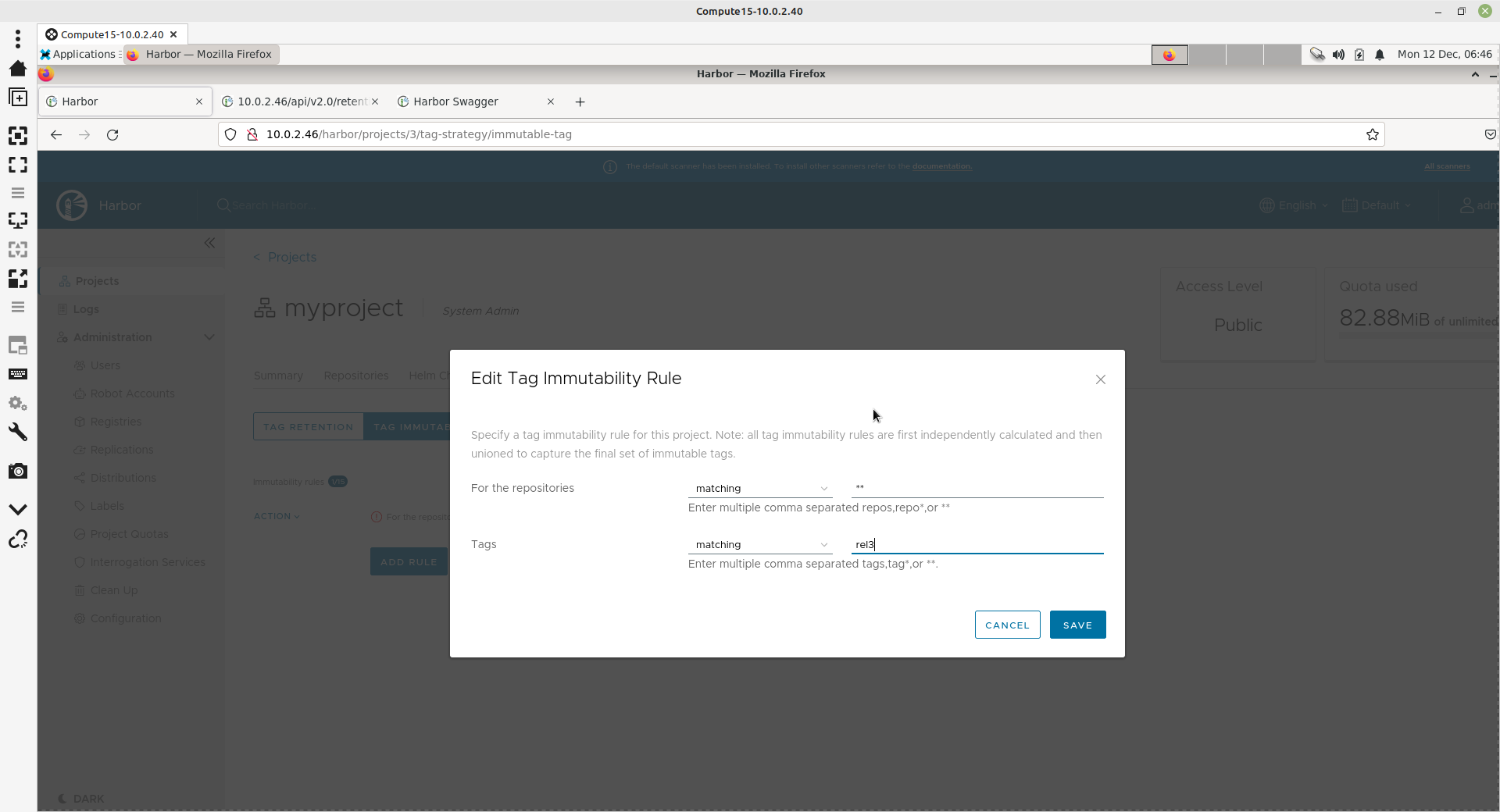 Retournez dans Harbor et modifier la règle d'immutabilité en ne spécifiant que le tag rel3 puis activez cette règle :