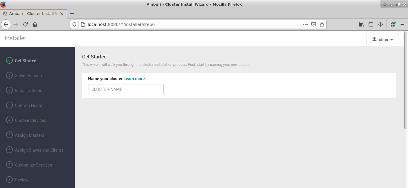 Ouvrez le navigateur Firefox et saisissez l'URL http://master1.ittraining.loc:8080. Entrez l'utilisateur admin et le mot de passe admin et cliquez sur le bouton SIGN IN :