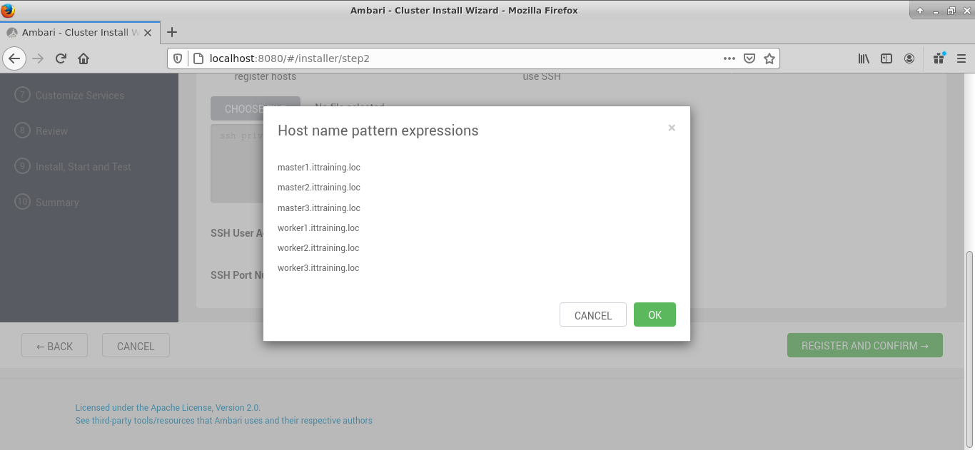 Validez la boîte d'avertissement et cliquez sur le bouton REGISTER AND CONFIRM. L'assistant résout les expressions régulières dans les nom d'hôtes et vous demande de confirmer. Cliquez donc sur le bouton OK :
