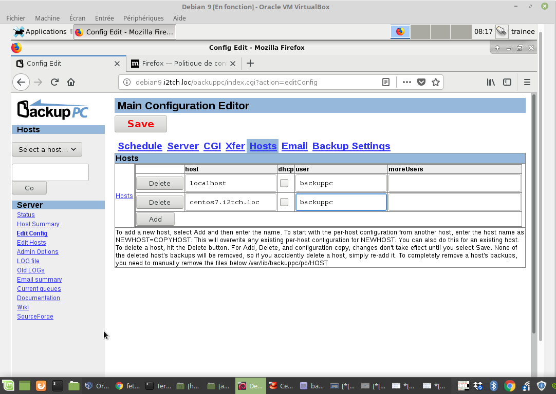 root@debian9:~# vi /var/backups/.amandahosts root@debian9:~# cat /var/backups/.amandahosts localhost backup centos7.i2tch.loc amandabackup amdump