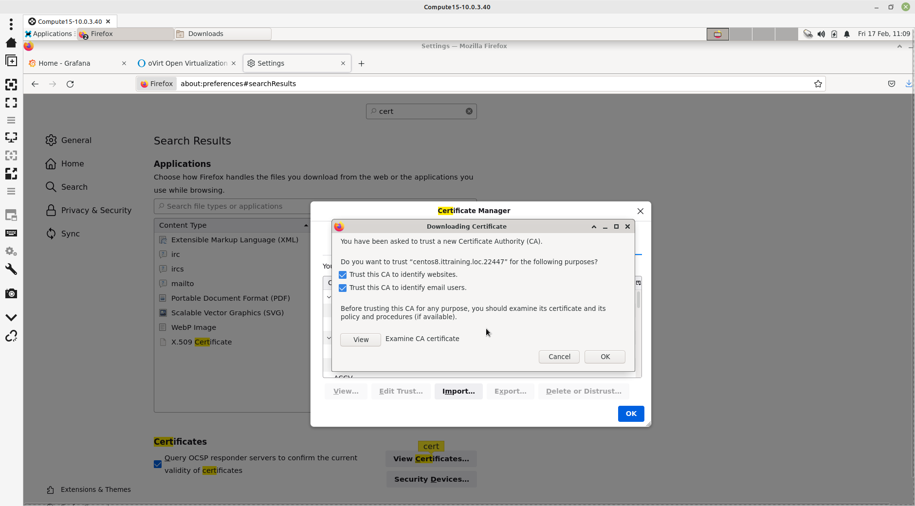 En utilisant le navigateur de votre Gateway, allez à l'adresse http://centos8.ittraining.loc/ovirt-engine/services/pki-resource?resource=ca-certificate&format=X509-PEM-CA pour télécharger le certificat du CA d'oVirt. Ce fichier s'appelle pki-resource.