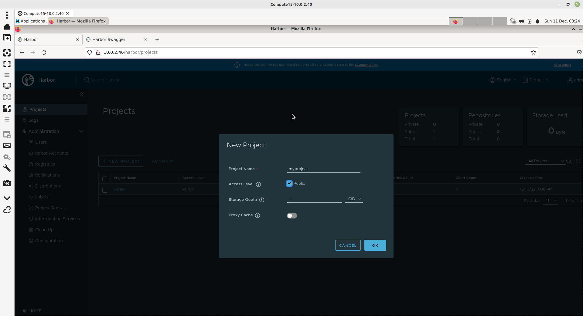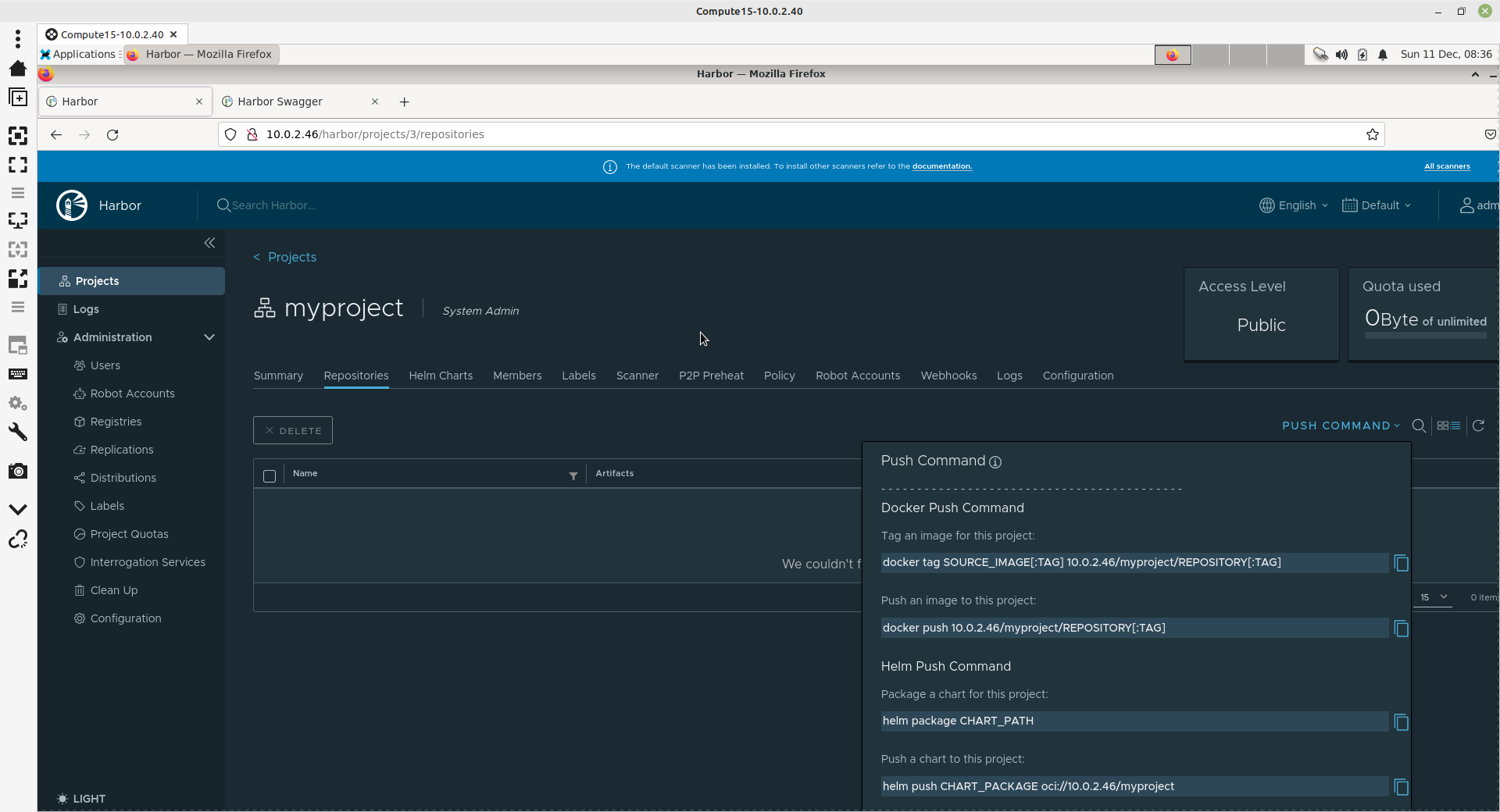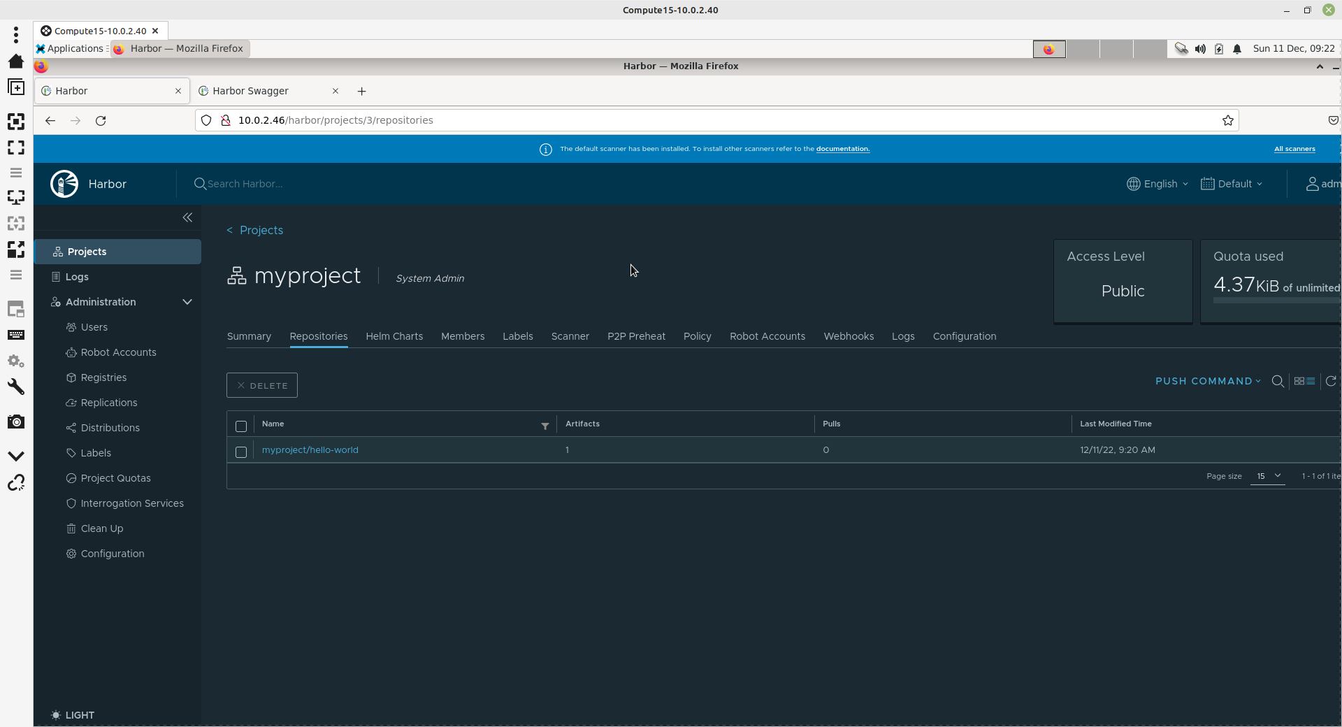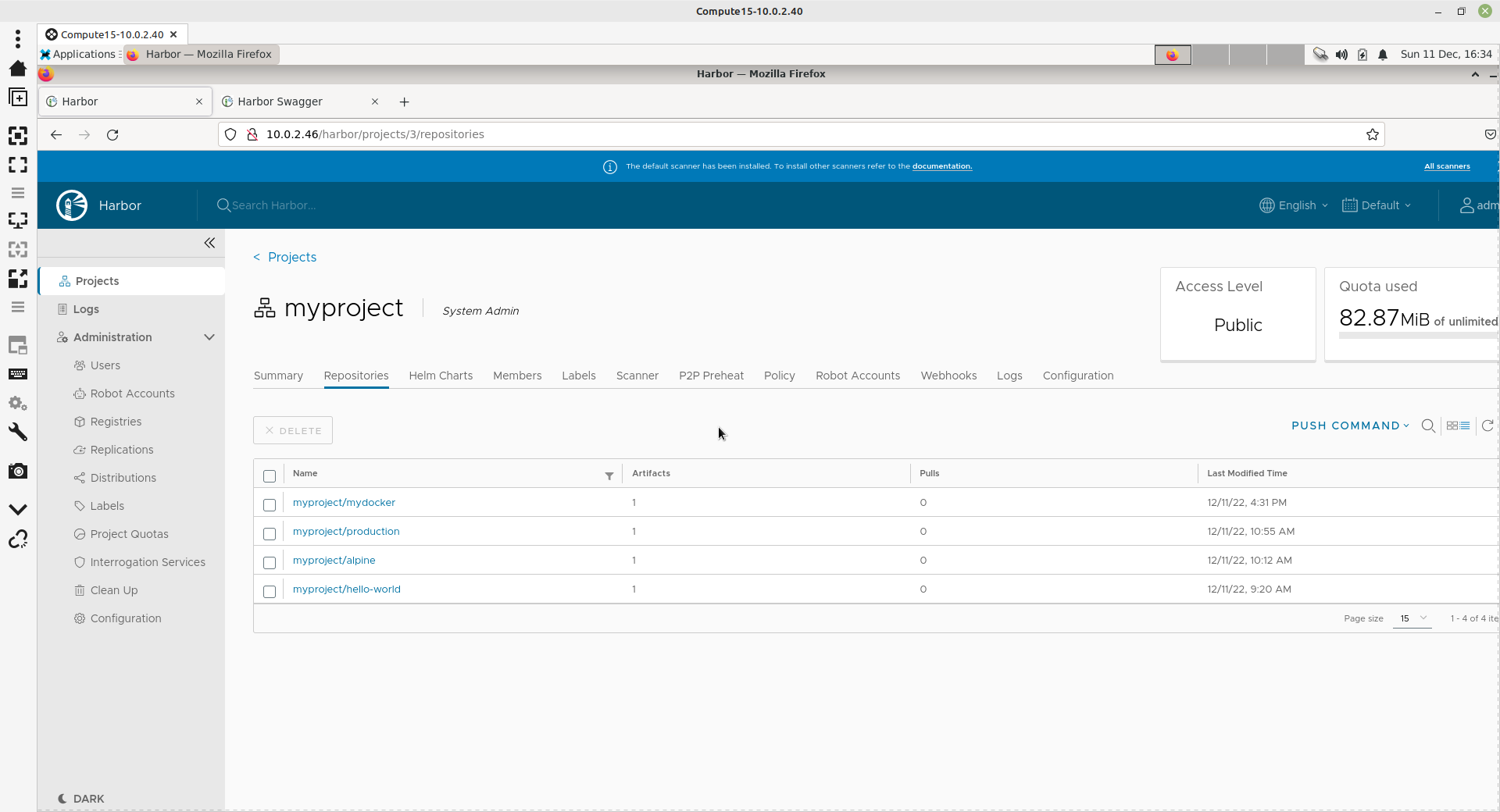 Retournez à l'interface de Harbor et cliquez sur Projects > myproject :