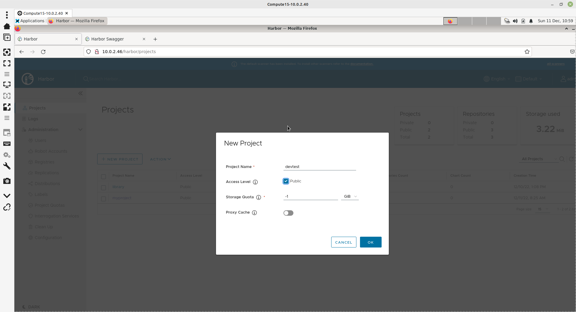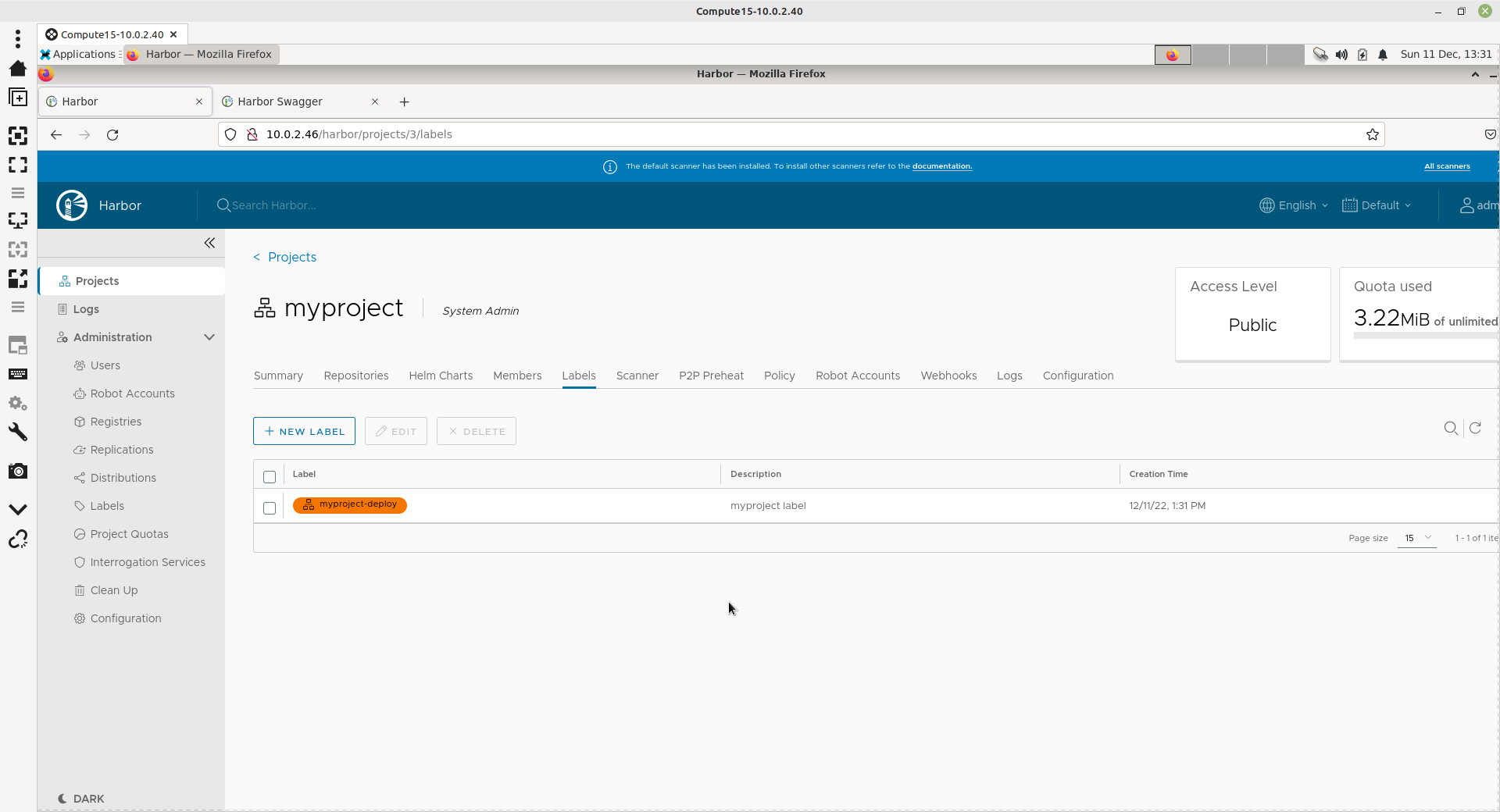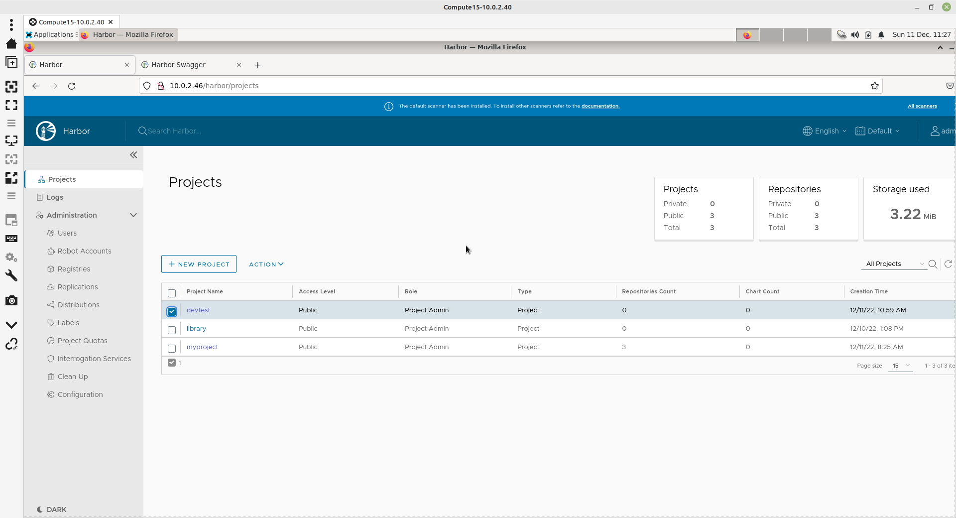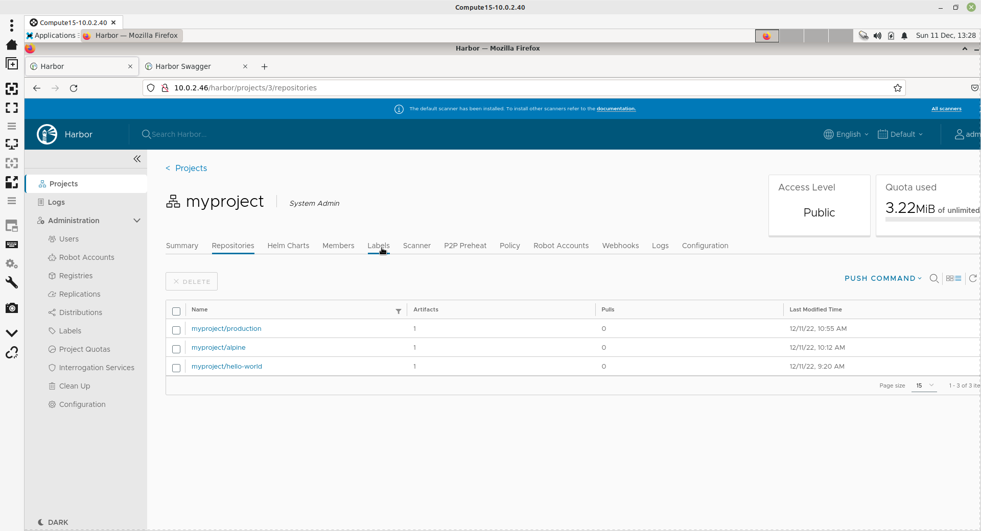 Retournez à l'interface de Harbor et cliquez sur Projects > myproject :