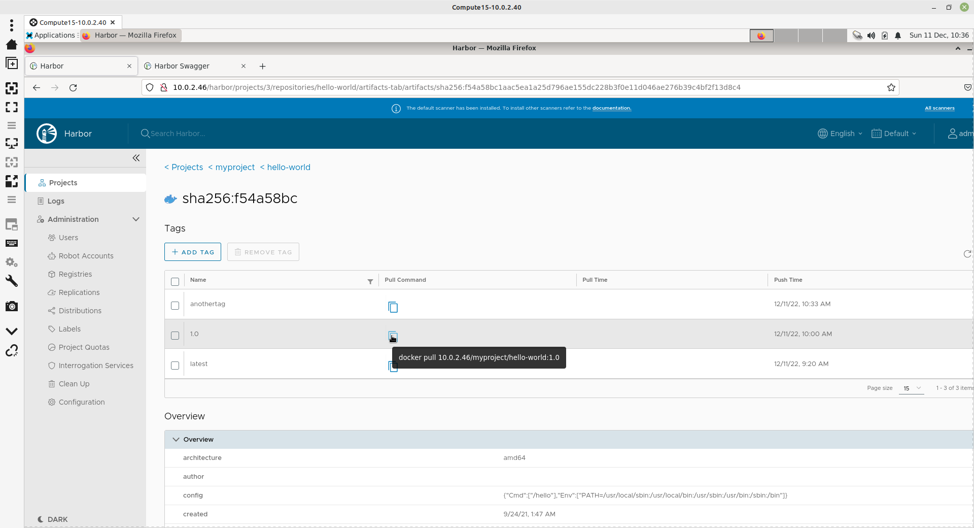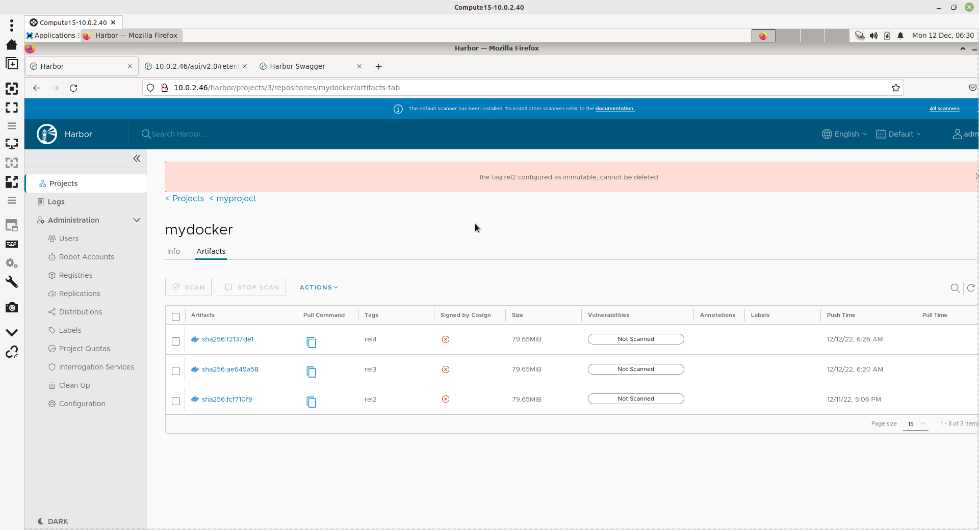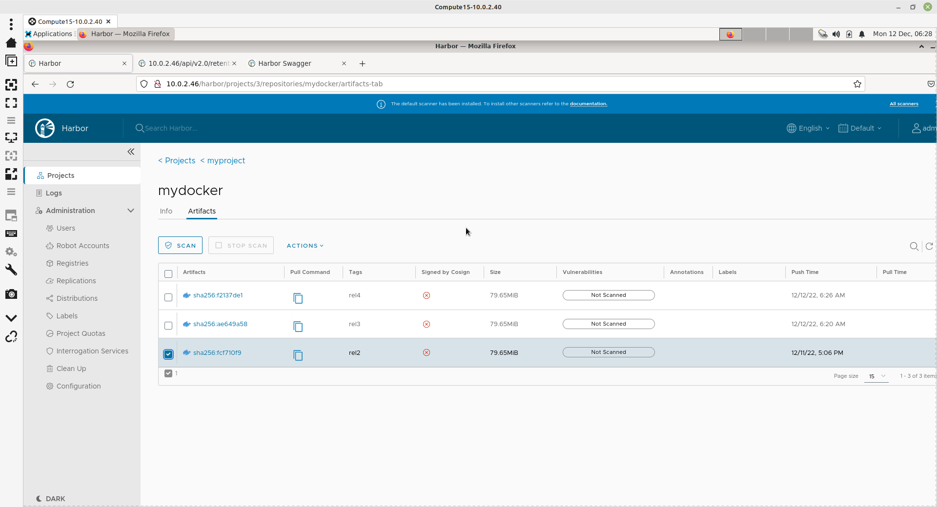 Dans l'interface de Harbor, cliquez sur Projects > myproject > myproject/mydocker et cochez rel2 :