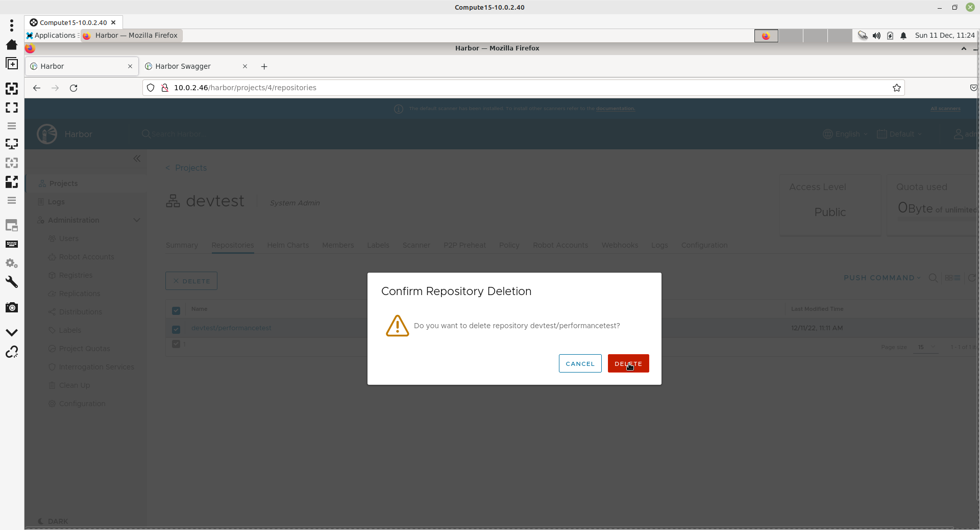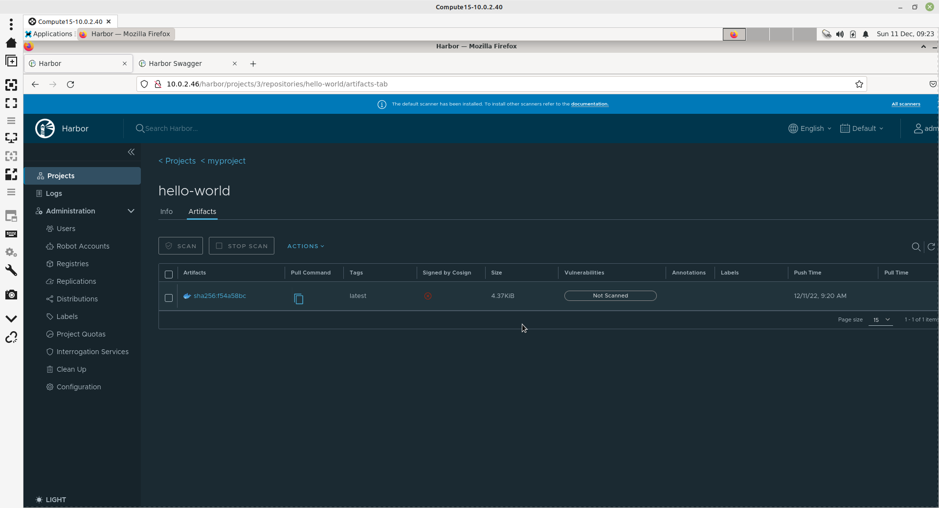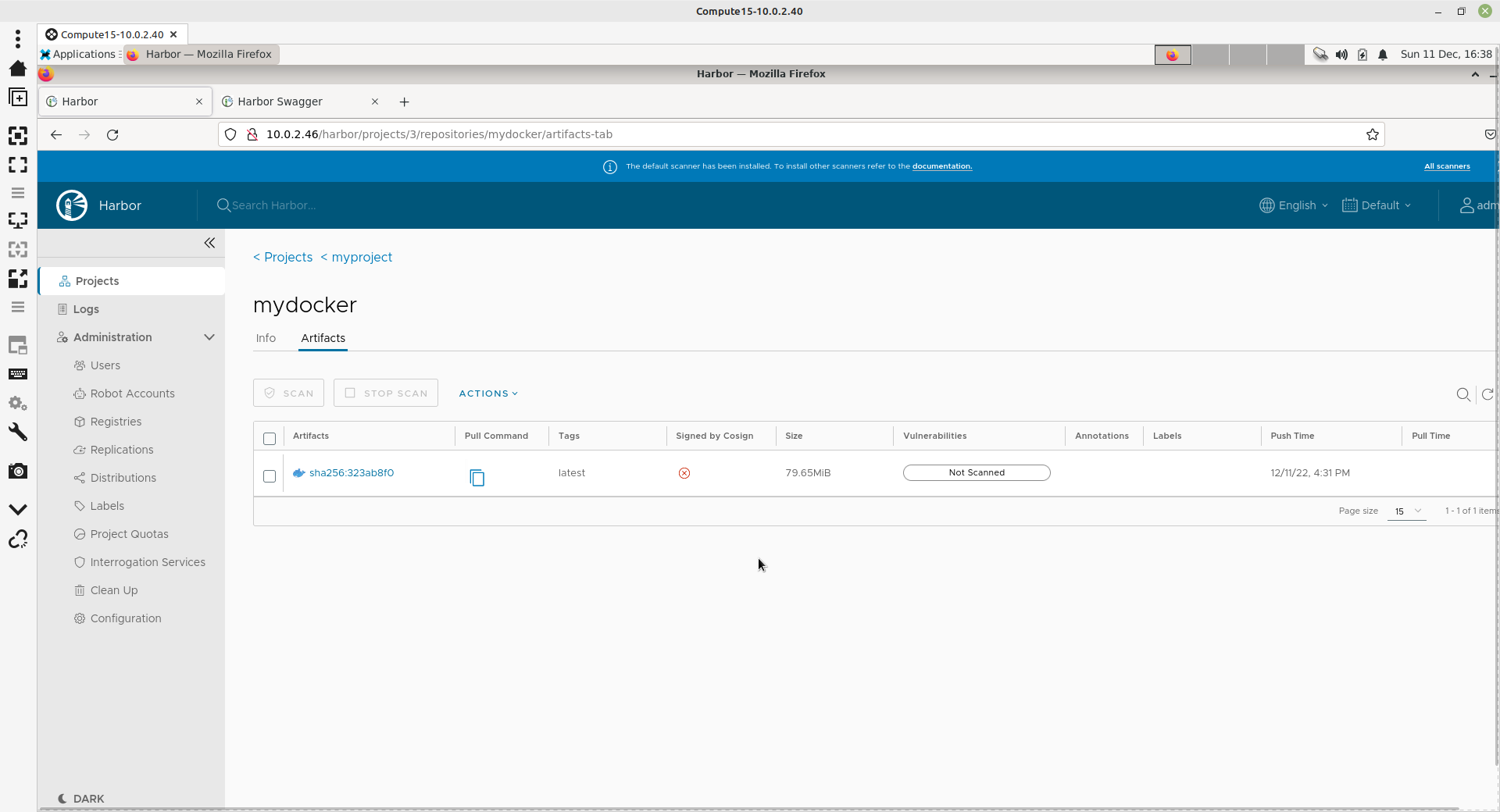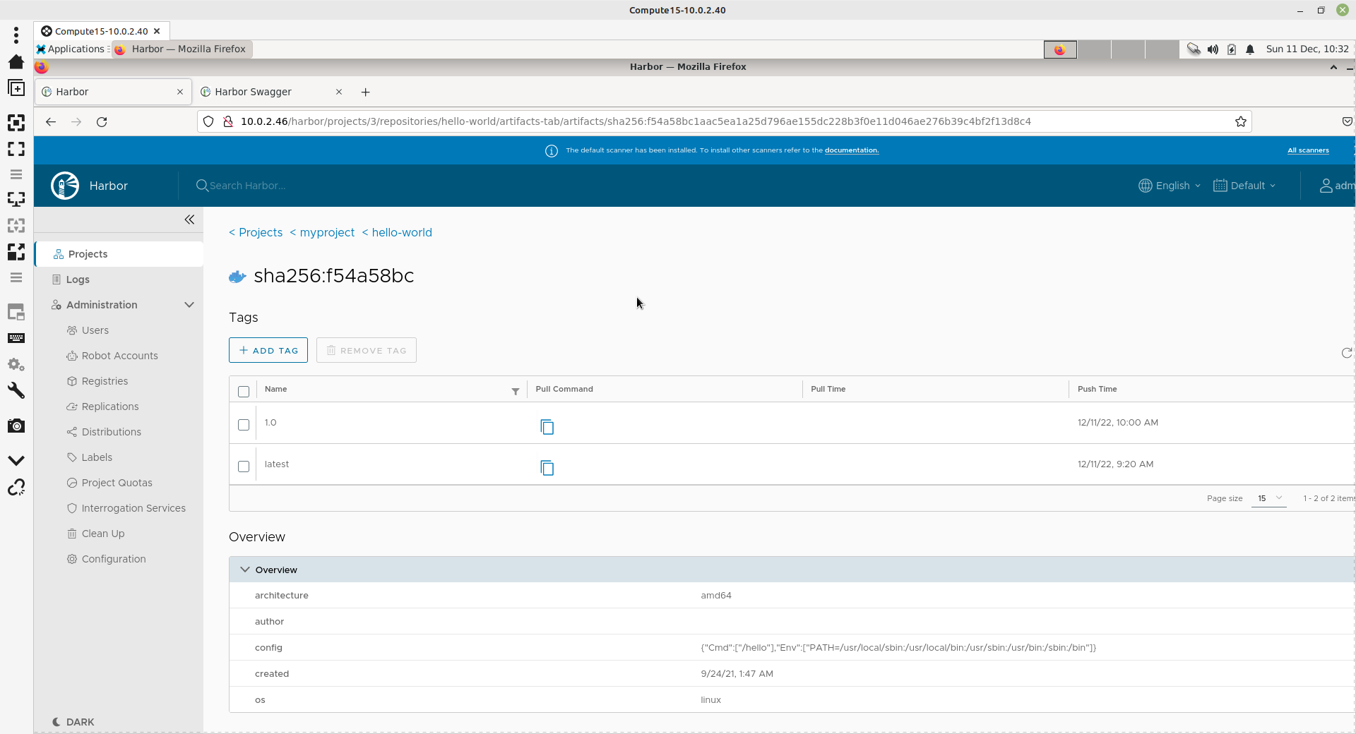 Dans l'interface de Harbor, cliquez sur Projects > myproject > myproject/mydocker et cochez rel2 :