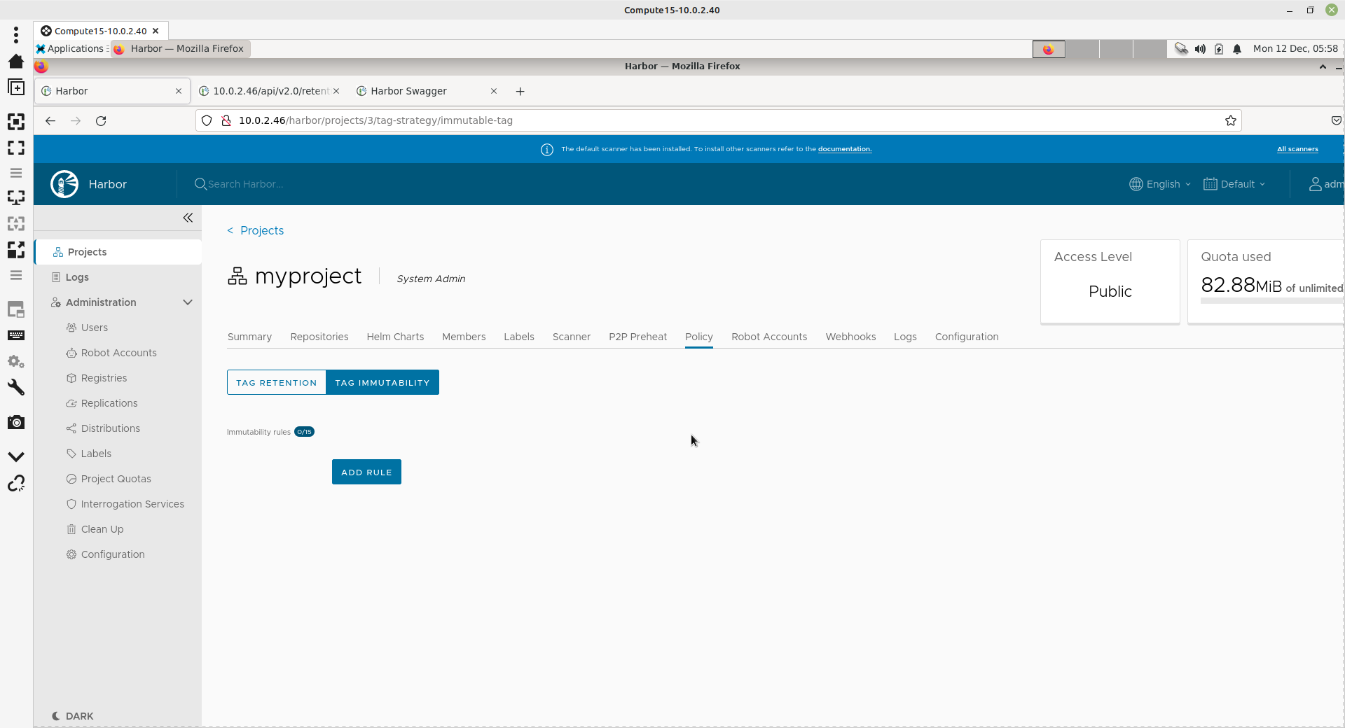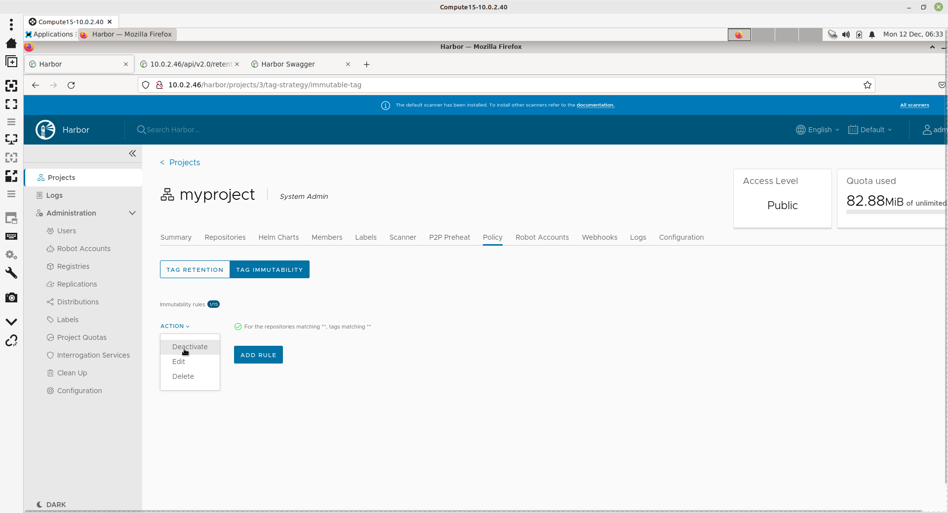 Retournez dans Harbor et modifier la règle d'immutabilité en ne spécifiant que le tag rel3 puis activez cette règle :
