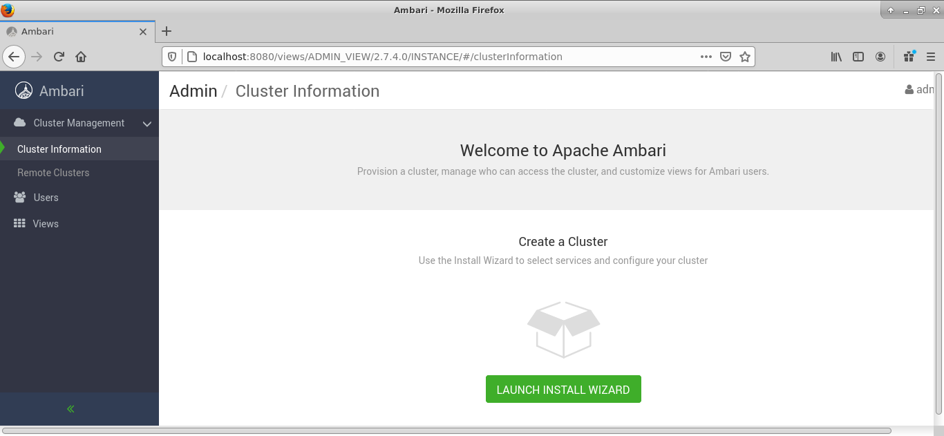Vous êtes maintenant dans la console d'Ambari :