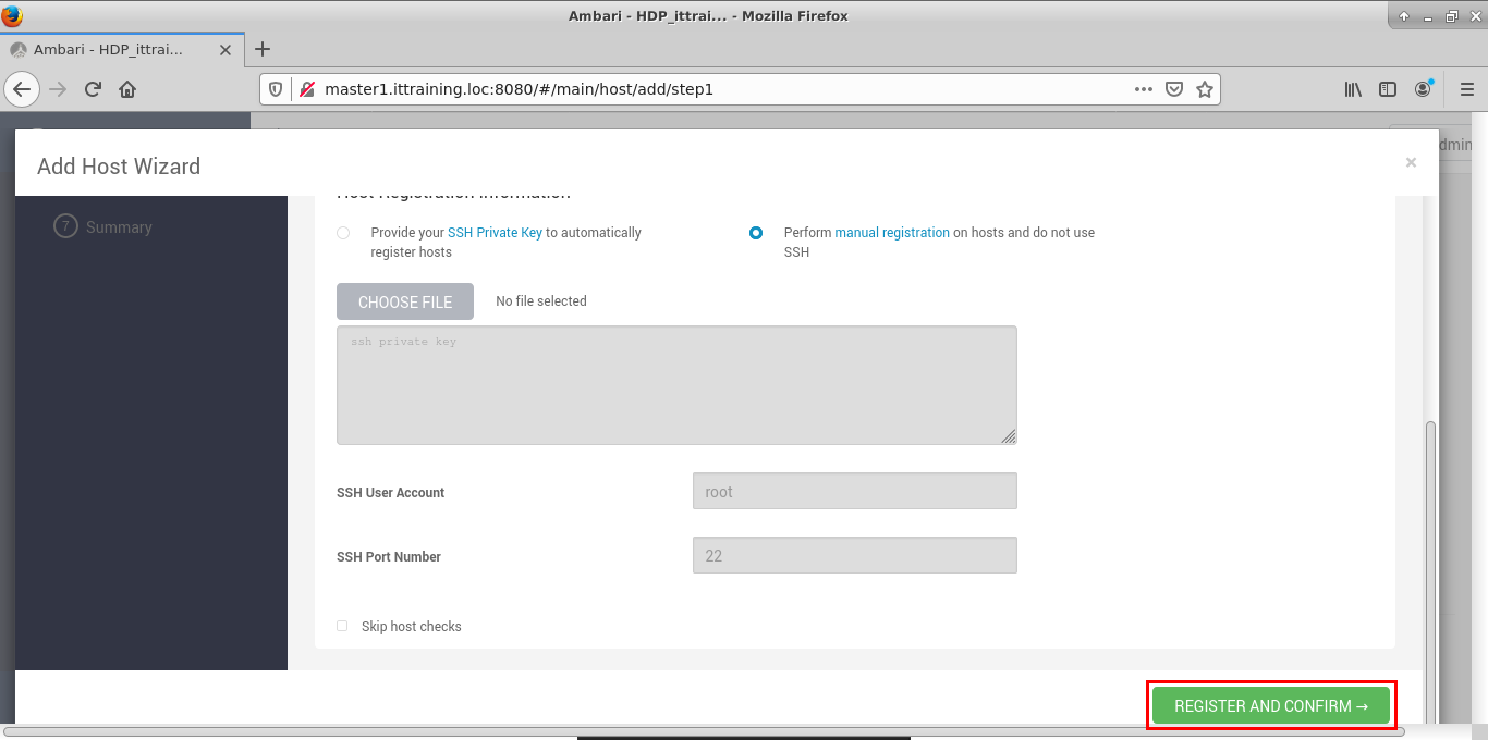Choisissez l'option Perform manual registration and do not use SSH puis cliquez sur le bouton OK pour valider la boîte d'avertissement :